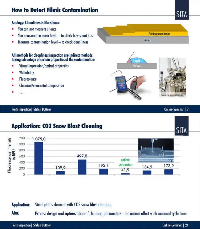 内容:本场研讨会将展示如何运用析塔SITA CleanoSpector表面清洁度仪和SITA SurfaSpector接触角仪,实现零部件表面清洁度的量化检测,重点介绍荧光法这一关键技术。